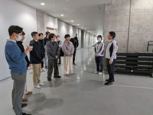 いずれも森執行役員様が学生をご案内・解説されました。豊田市はトヨタ自動車のおひざ元でもあり、大型施設が数多くあります。その中のかなりの数を清掃・警備されている日本クリーナー様。社員の方々への接し方も「個性に寄り添った」ものでした。学生たちは清掃現場、施設内の待機場所を見せて頂きました。「こんなに広い施設のクリンリネスを保つのは大変だろうな・・・」が率直な感想。社員の方々との昼食懇談会では、かなり打ち解けて笑いとおしゃべりがミックス。グループディスカッションでは教員の私は思わずアドバイスしたくなりましたが我慢我慢。とても有意義な時間を過ごすことができました。日本クリーナー様の柴田社長様、森執行役員様、ご案内&昼食懇談会に出席された社員様、清掃現場で働く社員の皆様、心から感謝いたします。ありがとうございました。