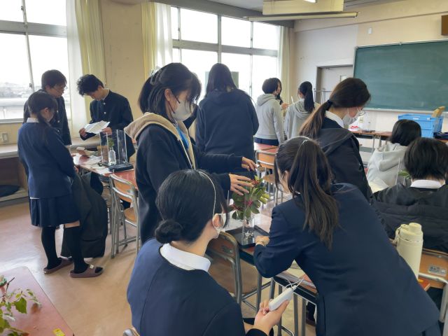 本学がカーボンニュートラルを探究する学習活動を支援している尾張旭市の愛知県立旭野高等学校において、2月2日、「植物の光合成実験と学習支援システムの活用」と題した連携授業を実施しました。本授業は、環境ビジネスコース教員の岡村聖教授が担当しました。